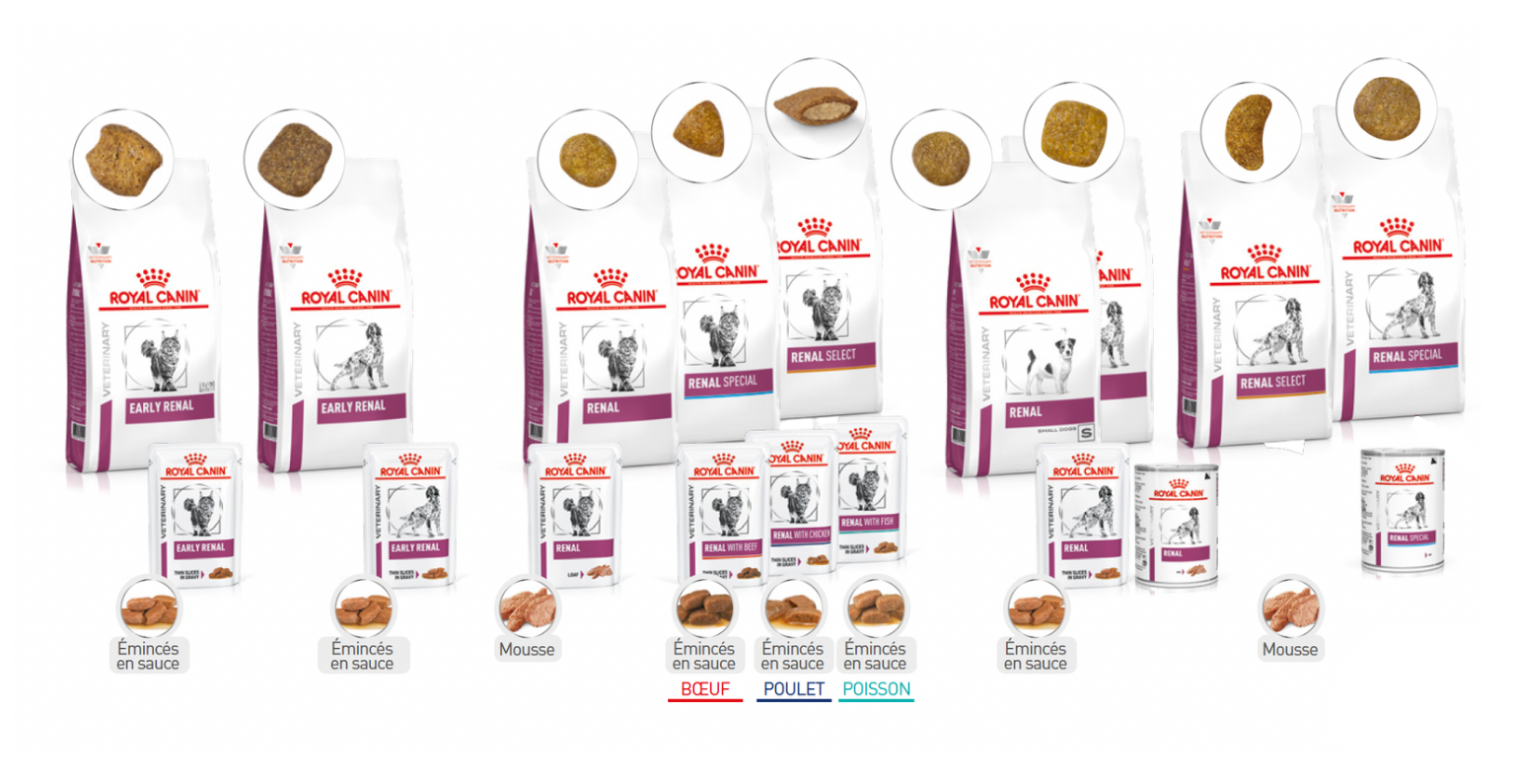 Royal Canin offre une gamme large d’aliments dédiés RENAL qui répond spécifiquement à ces besoins tout en étant très appétents.